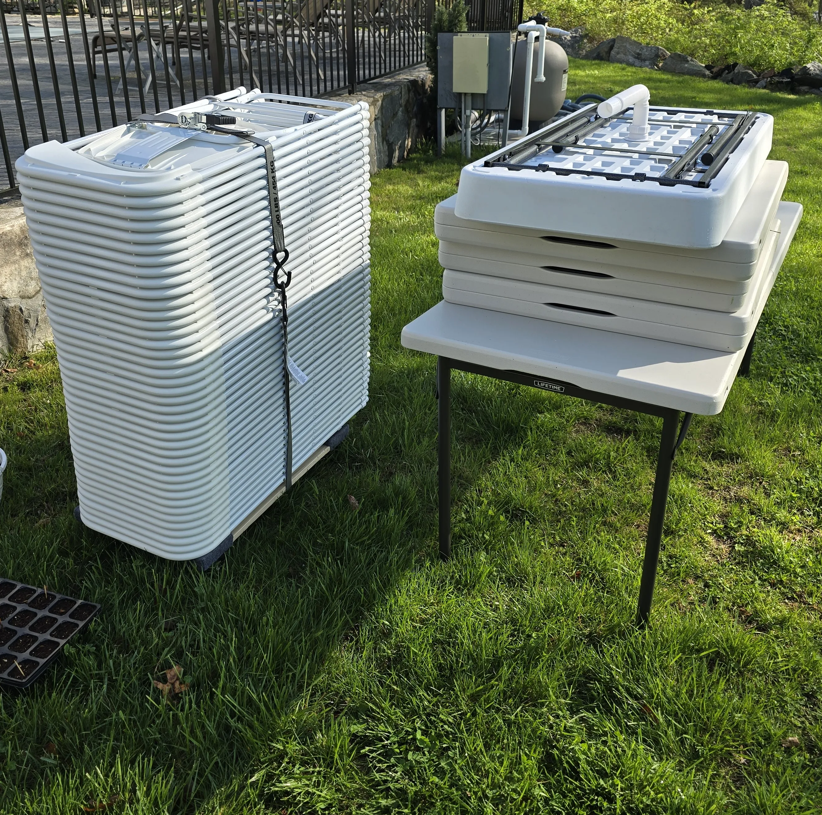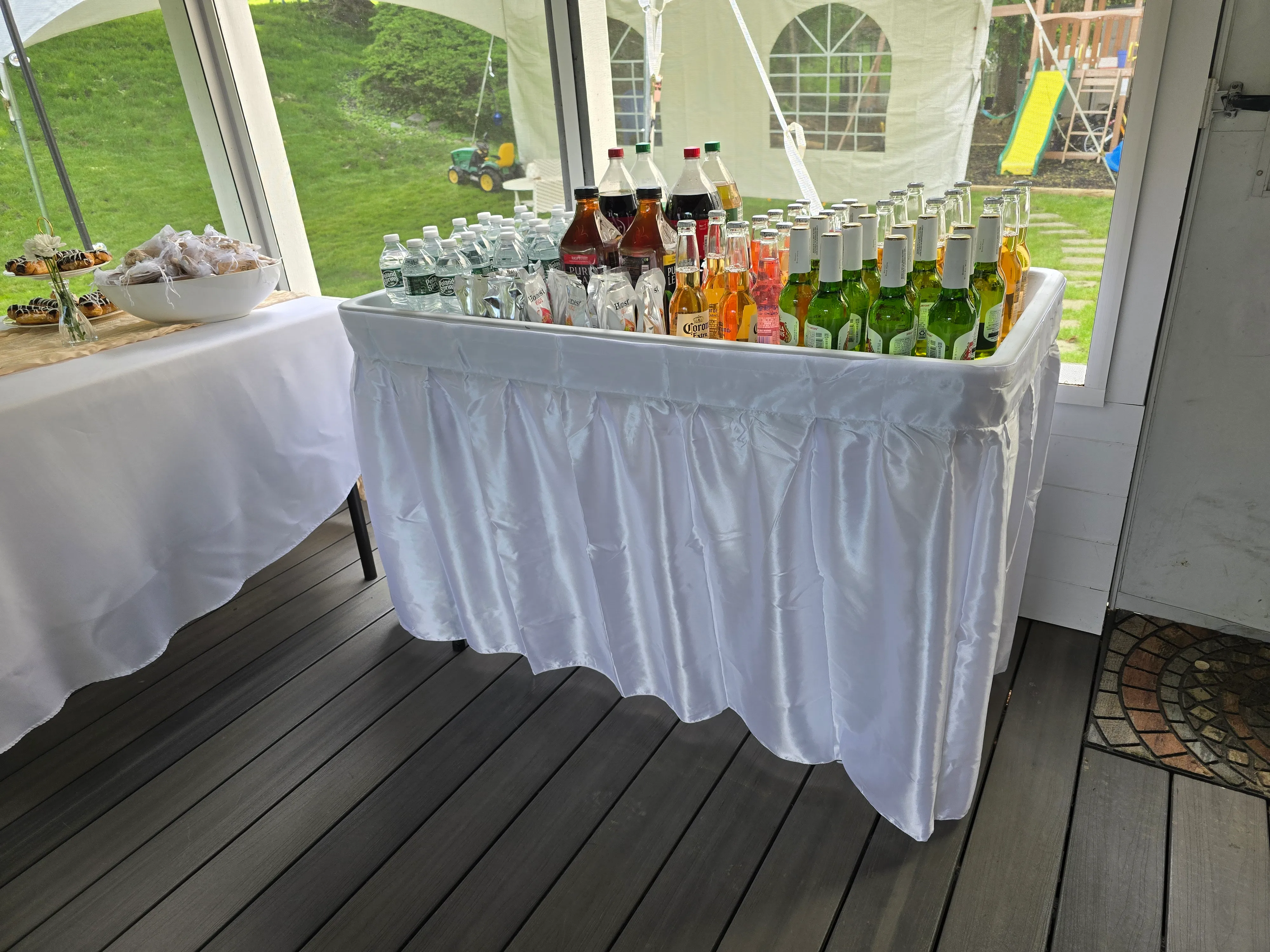 We got you covered with beautiful, clean white folding chairs and Tables. This customer opted for our 6ft. Rectangle Tables and our Awesome Fill & Chill Table.